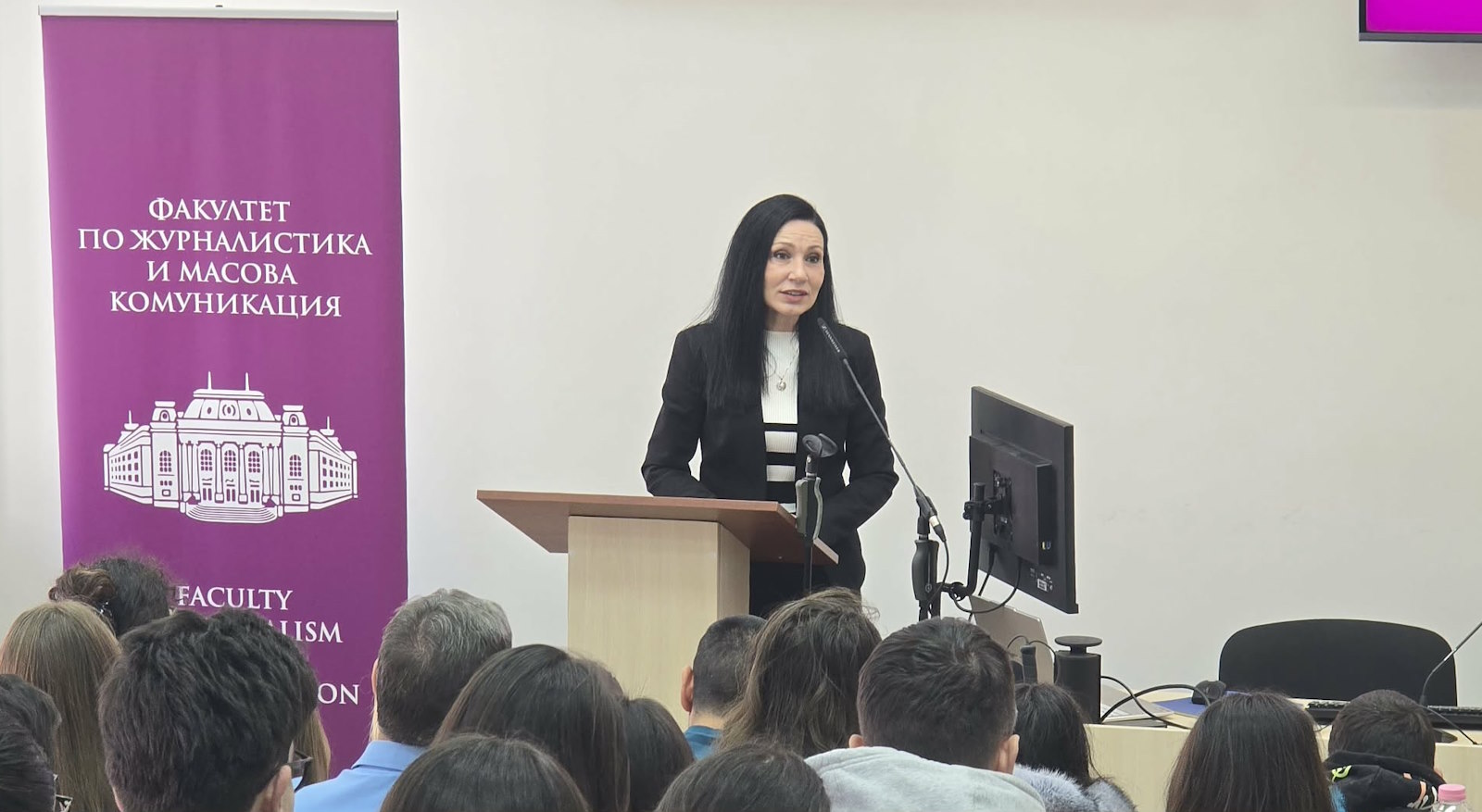 Prof. Valkanova also drew attention to the challenges of today’s media and communications environment, marked by disinformation, manipulation, and propaganda, as well as to the responsibility of young people who choose to pursue careers in this field. She also emphasized the importance of balancing fundamental theoretical training with practical education, noting that the faculty holds the highest accreditation rating in its professional field in the country, a national leader in the Bulgarian Higher Education Institution Ranking System, and the sole leader or Bulgarian representative in a number of international ranking systems.