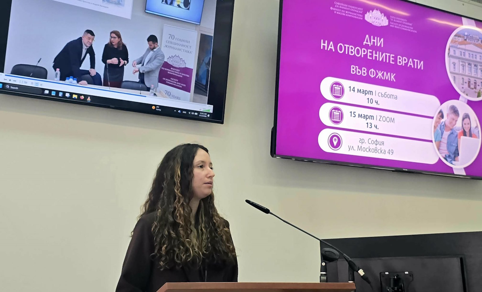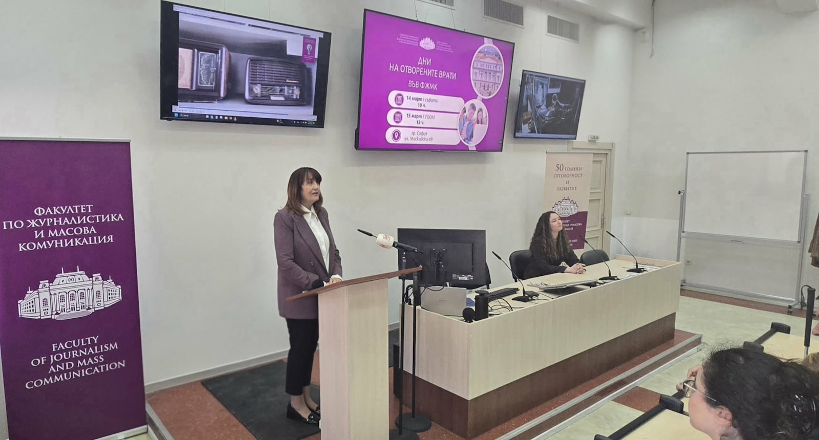 The event was opened by the Chair of the Faculty Student Council, Vasilena Grigorova, who welcomed the attendees and gave the floor to the Dean of the Faculty of Journalism and Mass Communication, Prof. Dr. Veselina Valkanova, for the opening remarks.